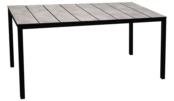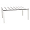 Τραπέζι με ηλεκτροστατικά βαμμένο σκελετό αλουμινίου και επιφάνεια αποτελούμενη από συμμετρικές λωρίδες Compact Hpl του Ιταλικού οίκου Abet Laminati.